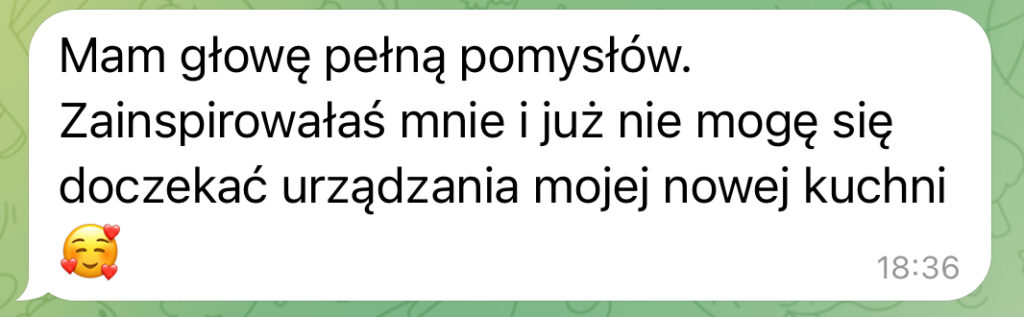 Here’s what it says: “It was the best decision in a long time! Thanks to Ania, I regained space, peace and energy. Every corner has been thought through, and I finally know where everything is.”